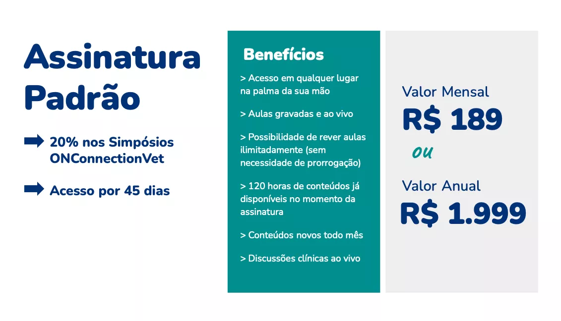 - Benefícios Exclusivos: Descontos garantidos em todos os novos Simpósios da Onconnectionvet (conforme plano escolhido)
